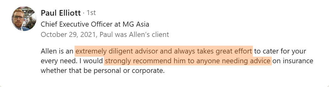 He has helped me navigate around all the different insurance and financial products in the market, and given me his very honest and measured assessment and recommendation that serves my needs the most.