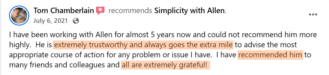 Allen is willing to set aside his time to join me in any appointment to ensure that my client’s enquiries are attended to.